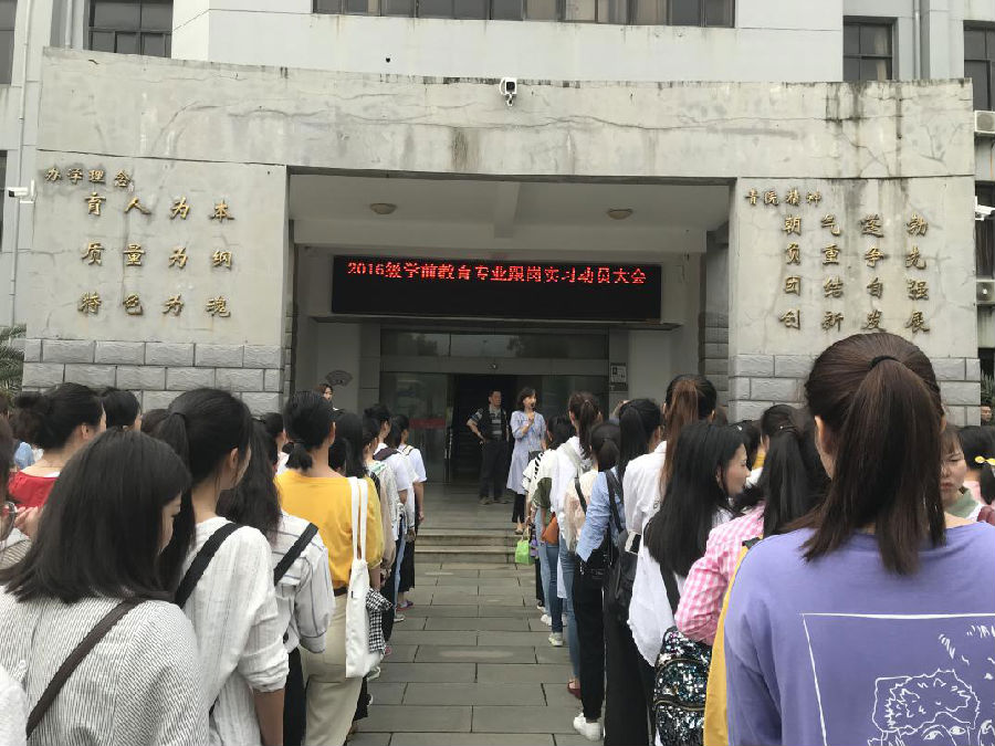 2018年5月2日上午8时江西青年职业学院青少年教育系在行政楼门口举行16级学前教育专业跟岗实习动员大会。