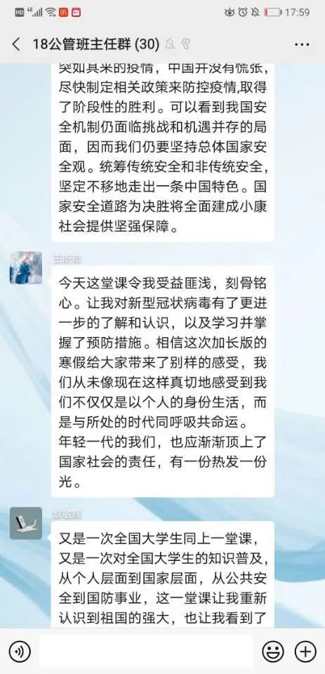 在青少年教育系各支部团支书的带领下,同学们通过网站、微博、微信、快手等多种学习途径,一起聆听范维澄院士以“总体国家安全观视角下的疫情防控”为主体的这堂国家安全教育课。