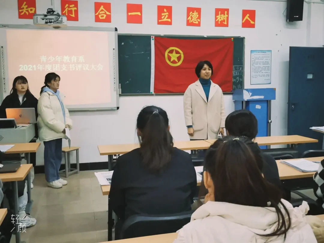 2021年12月21日下午16:40,青少年教育系2021年度团支书评议大会在教学楼413教室召开。评议大会开始,系党支部书记戴彩云老师为各班团支书加油打气并感谢各班团支书近一年来为班级、系部所做出的贡献。同时也希望各团支书加强理论和专业的学习继续保持团员先进性,将自身成长融入到团支部、系部的建设中去。